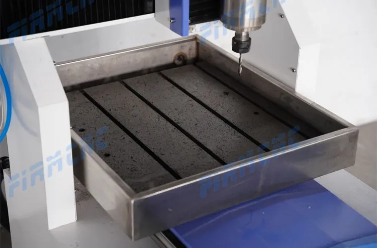 Equipped with constant water cooled spindle, high speed step motor, and strong stainless steel T-slot table.